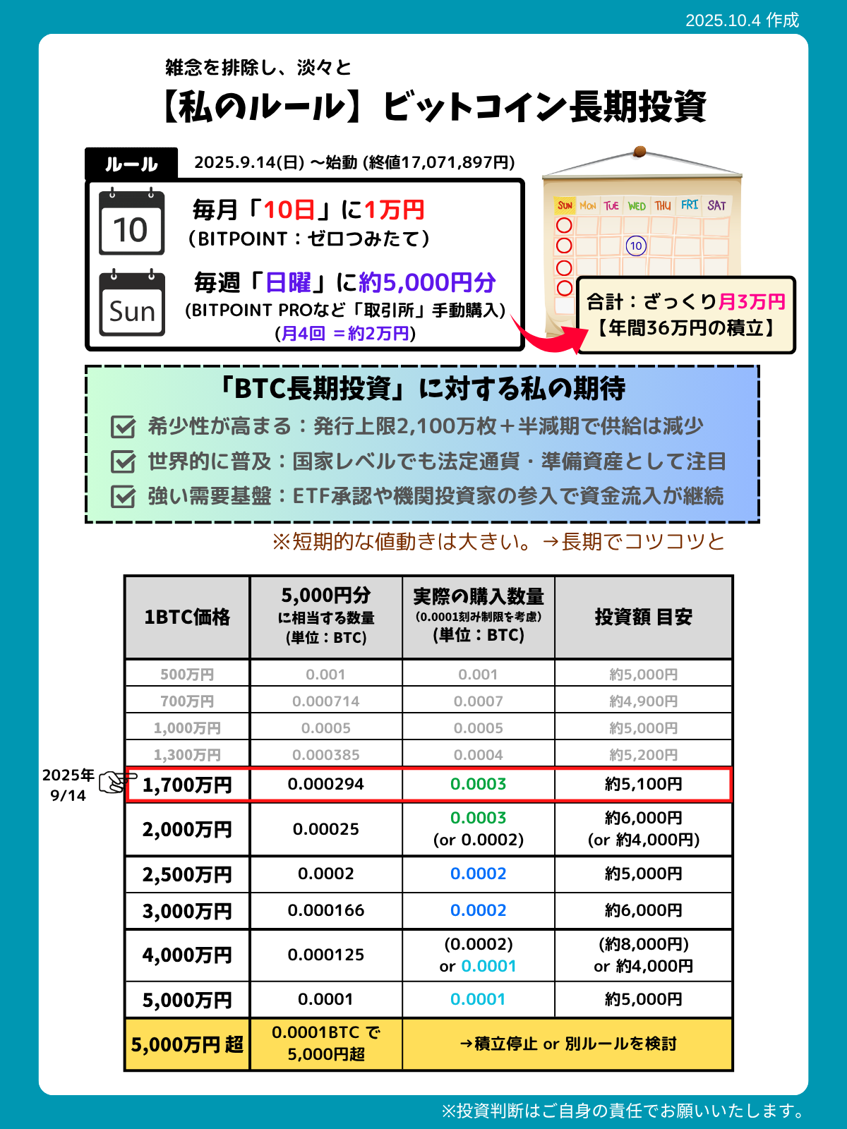 前提:BTC積立ルール(2025.9.14~実践中)