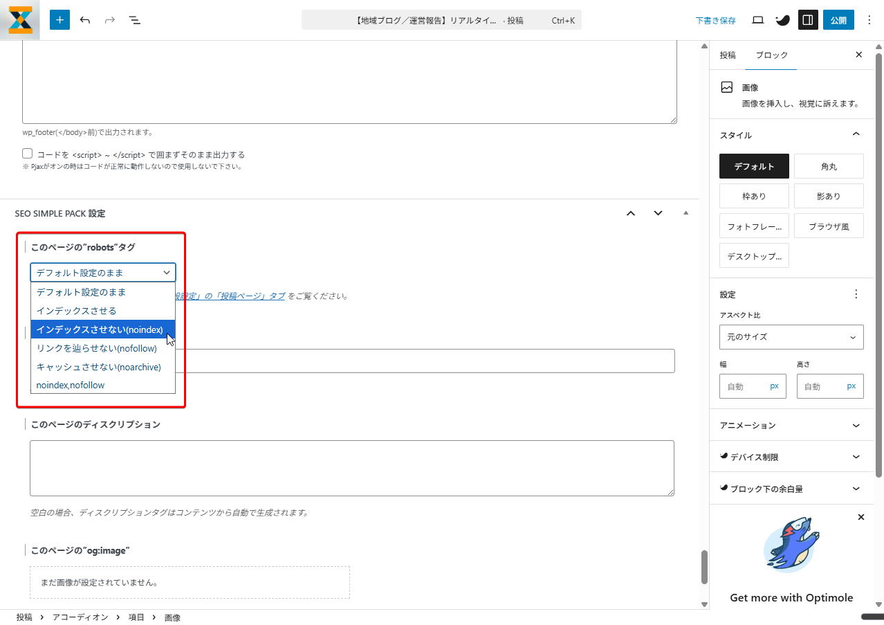 【最後に余談】この記事自体は「noindex」